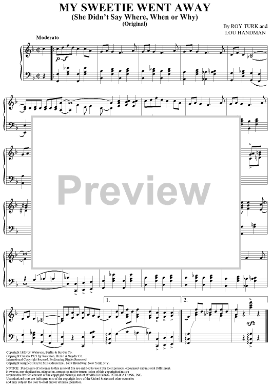 Digital Sheet Music for My Sweetie Went Away (Original) by Fats Waller, Louis Handman, Roy Turk scored for Piano Solo; id:313666