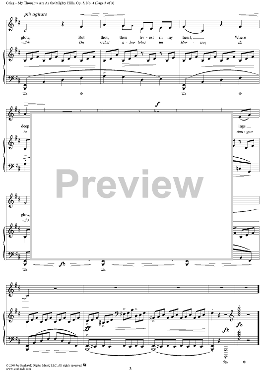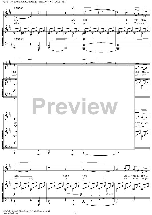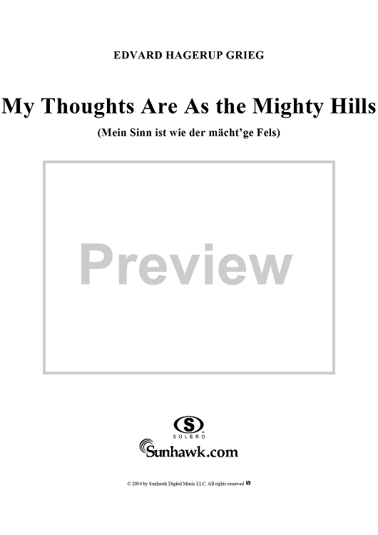 Digital Sheet Music for My Thoughts Are As the Mighty Hills, Op. 5, No. 4 by Edvard Grieg, Hans Christian Andersen scored for Voice/Piano; id:303606