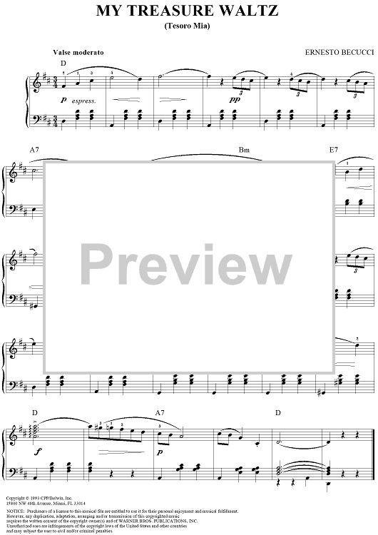 Digital Sheet Music for My Treasure Waltz (Tesoro Mia) by Ernesto Becucci scored for Piano Solo; id:275678