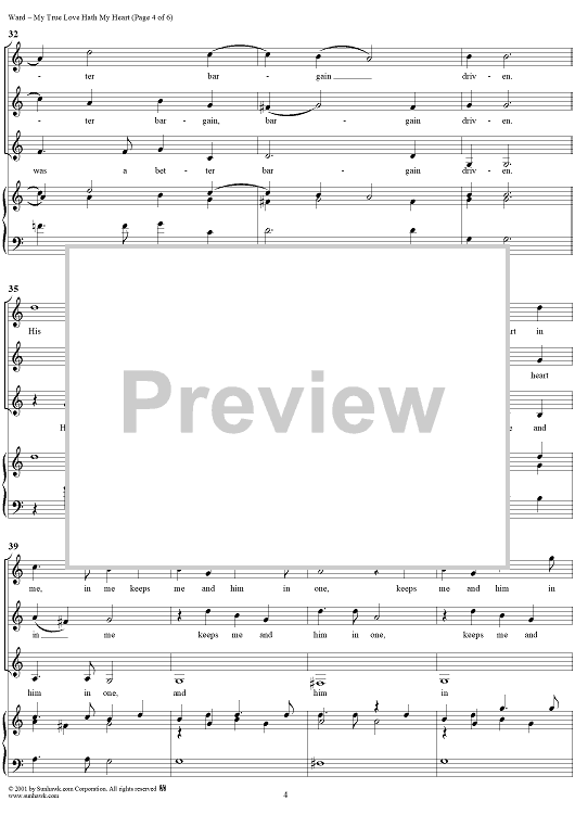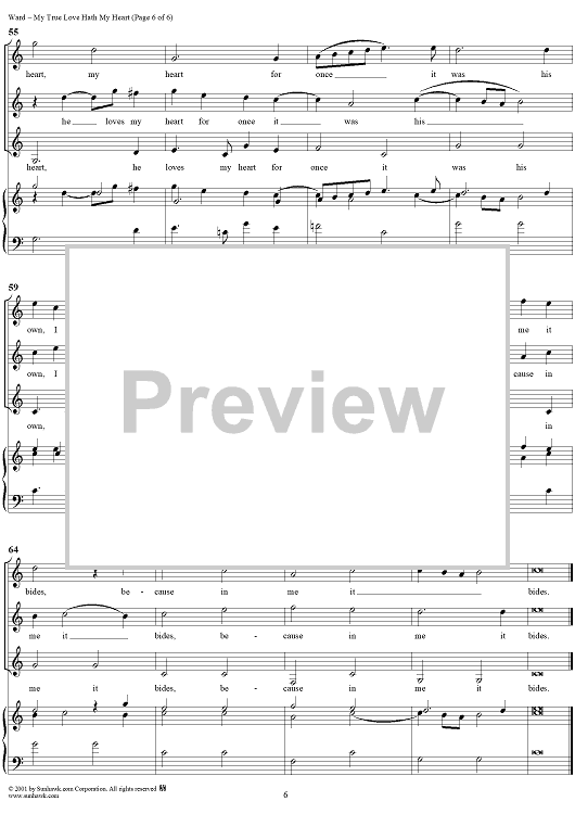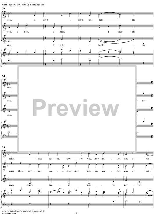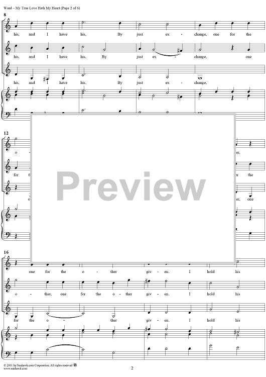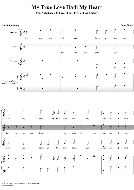 Digital Sheet Music for My True Love Hath My Heart by John Ward, Sir Philip Sidney scored for Mixed Chorus; id:249604