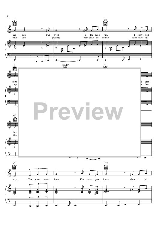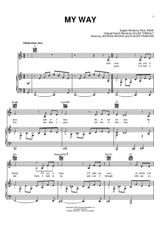 Digital Sheet Music for My Way by Frank Sinatra, Elvis Presley, Jacques Revaux, Gilles Thibault, Nina Simone, Tom Jones, Sex Pistols, Claude Francois, Paul Anka scored for Piano/Vocal/Chords; id:375482