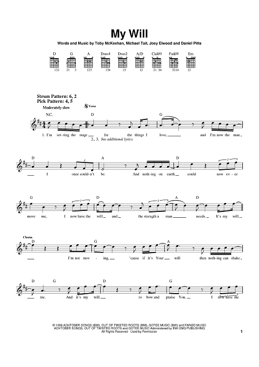 Digital Sheet Music for My Will by DC Talk, Various, tobyMac, Joey Elwood, Daniel Pitts, Michael Tait scored for Easy Guitar; id:398212