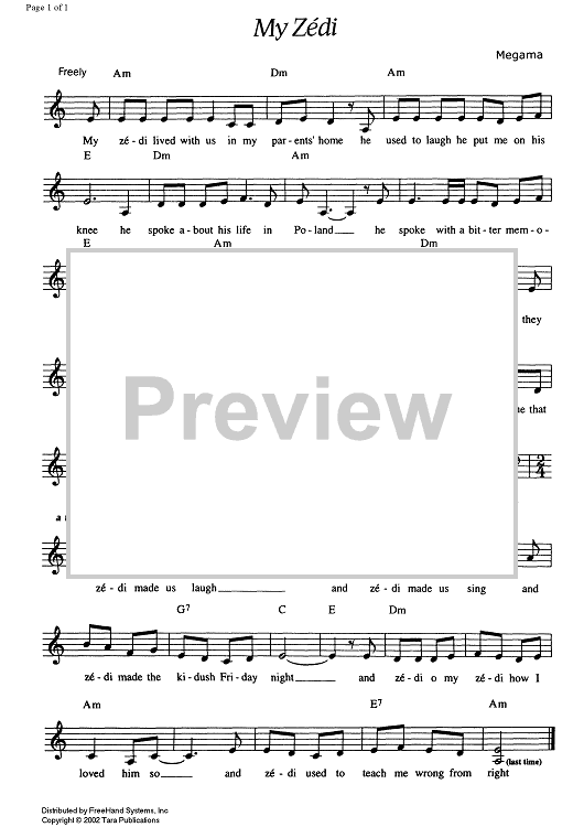 Digital Sheet Music for My Zédi - Score by Megama, Velvel Pasternak scored for Any Klezmer instrumentation; id:348601