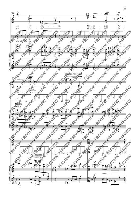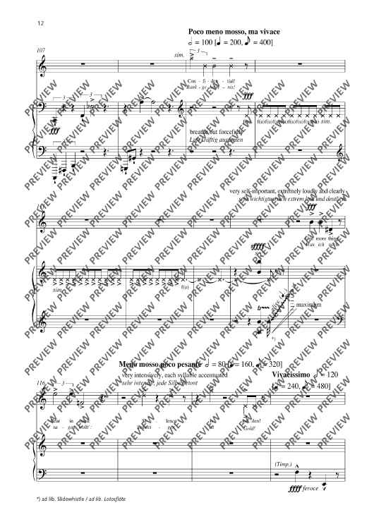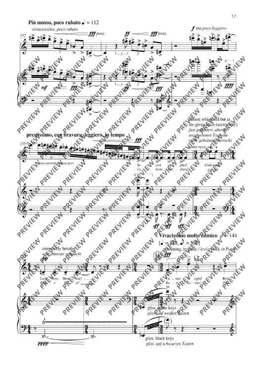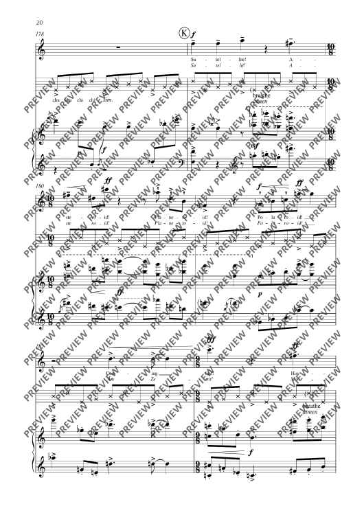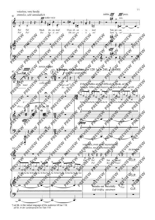 I composed my opera Le Grand Macabre from 1974 to 1997. The Mysteries of the Macabre are arrangements of three coloratura arias of the chief of the “Secret Political Police” which have been arranged (beautifully!) for chamber ensemble by Elgar Howarth. My friend Howarth had conducted the world premiere of the opera in Stockholm in 1978 and some of the further productions. The half-nonsense text is an immediate – however more accurate – continuation of the idea of my works Aventures and Nouvelles Aventures, but there is no chromatics in the music any more.