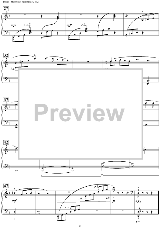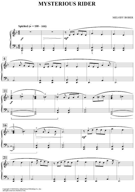 Digital Sheet Music for Mysterious Rider by Melody Bober scored for Piano; id:457622