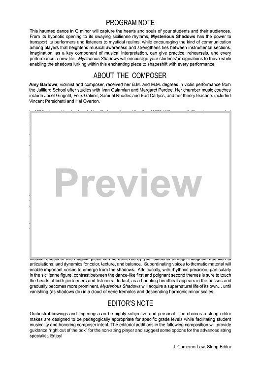 Digital Sheet Music for Mysterious Shadows - Full Score by Amy Barlowe scored for Orchestra; id:504230