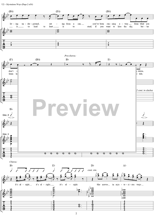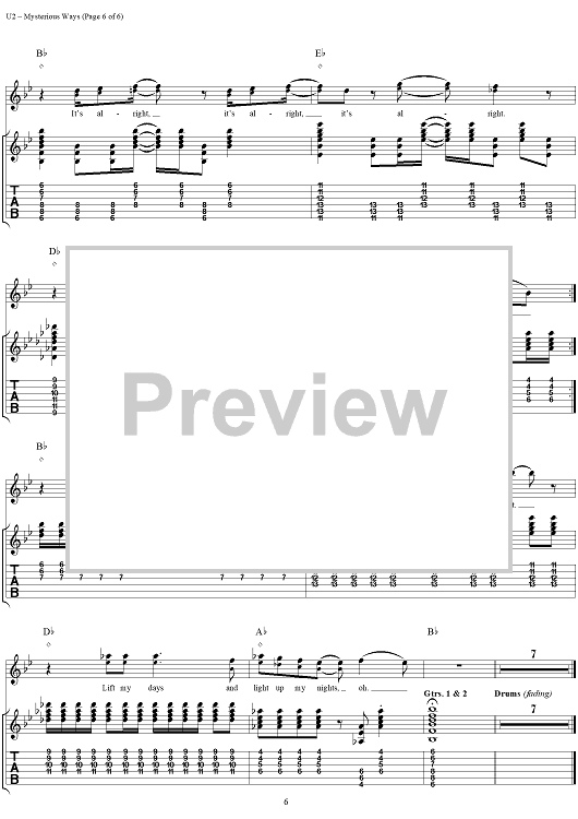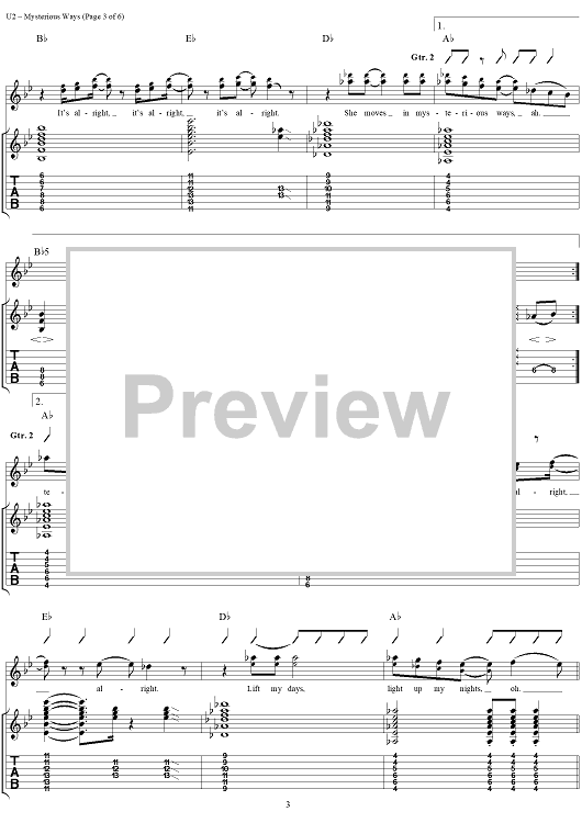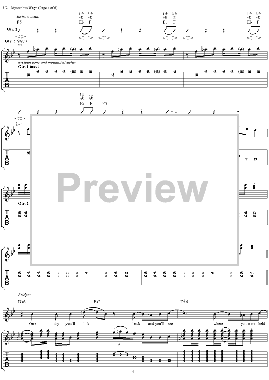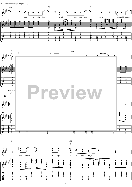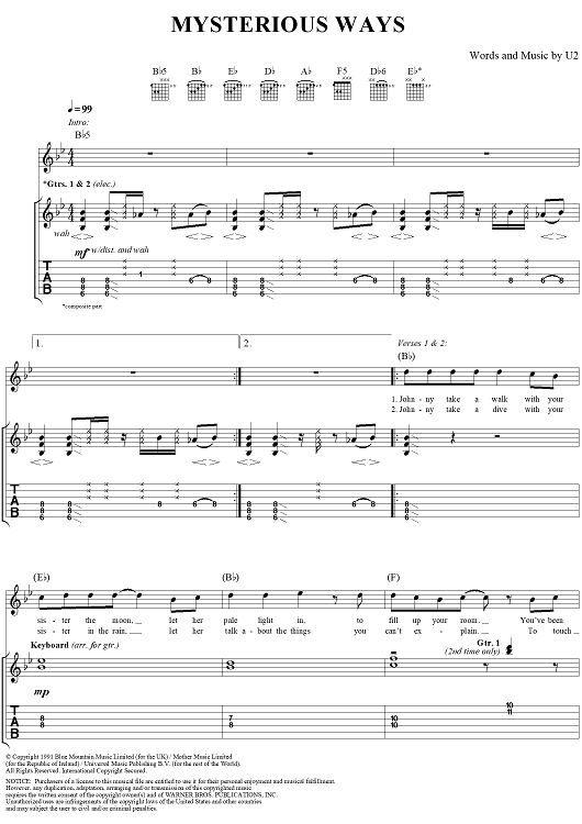 Digital Sheet Music for Mysterious Ways by U2 scored for Guitar Tab/Vocal; id:296463
