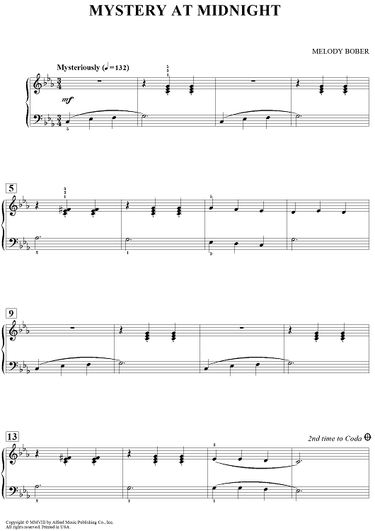 Digital Sheet Music for Mystery At Midnight by Melody Bober scored for Piano; id:457623