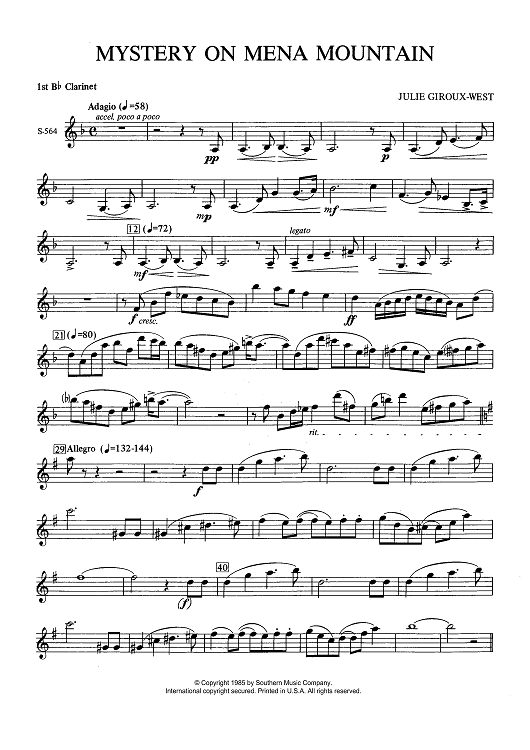 "Mystery on Mena Mountain - Bb Clarinet 1" Sheet Music by Julie Giroux