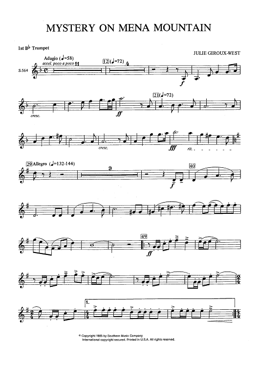 "Mystery on Mena Mountain - Bb Trumpet 1" Sheet Music by Julie Giroux