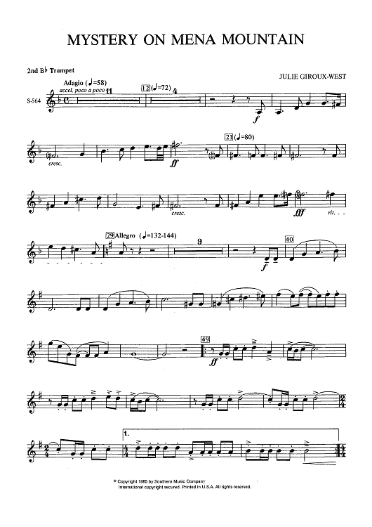 "Mystery on Mena Mountain - Bb Trumpet 2" Sheet Music by Julie Giroux