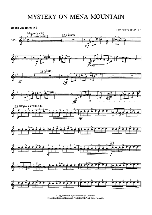 "Mystery on Mena Mountain - F Horn 1 & 2" Sheet Music by Julie Giroux