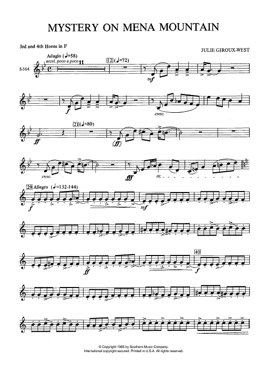 "Mystery on Mena Mountain - F Horn 3 & 4" Sheet Music by Julie Giroux