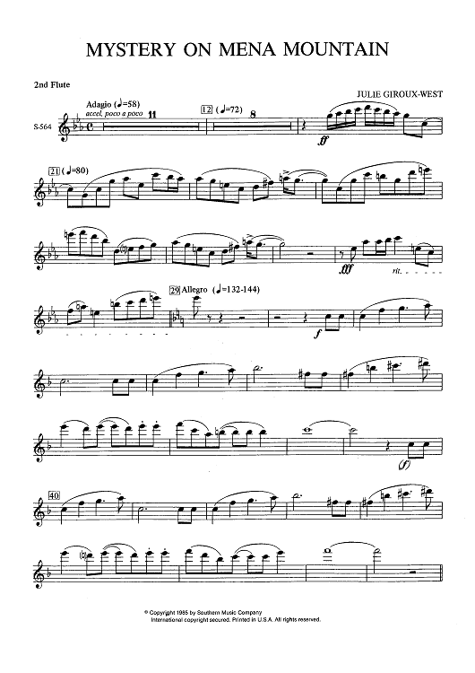 "Mystery on Mena Mountain - Flute 2" Sheet Music by Julie Giroux