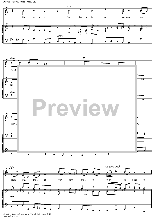 Digital Sheet Music for Mystery's Song by Henry Purcell scored for Voice/Piano; id:303502