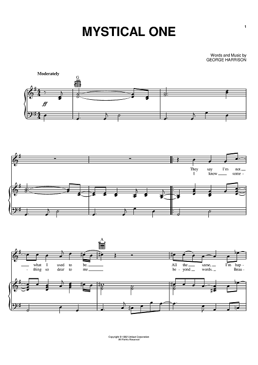Digital Sheet Music for Mystical One by George Harrison scored for Piano/Vocal/Chords; id:384887