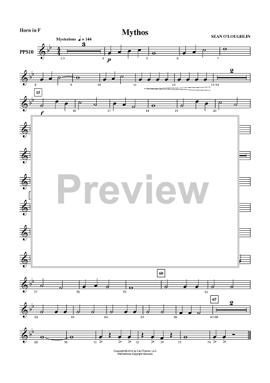 Digital Sheet Music for Mythos - Horn in F by Sean O'Loughlin scored for Concert Band; id:431108