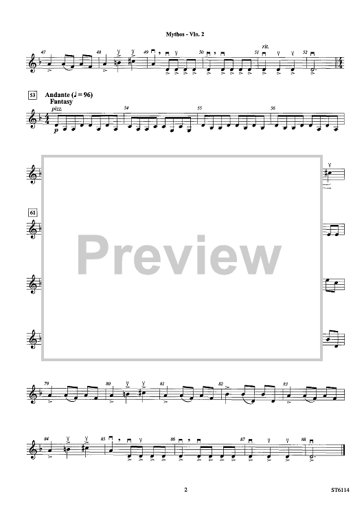 Digital Sheet Music for Mythos - Violin 2 by Soon Hee Newbold scored for String Orchestra; id:441191