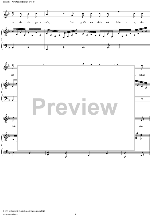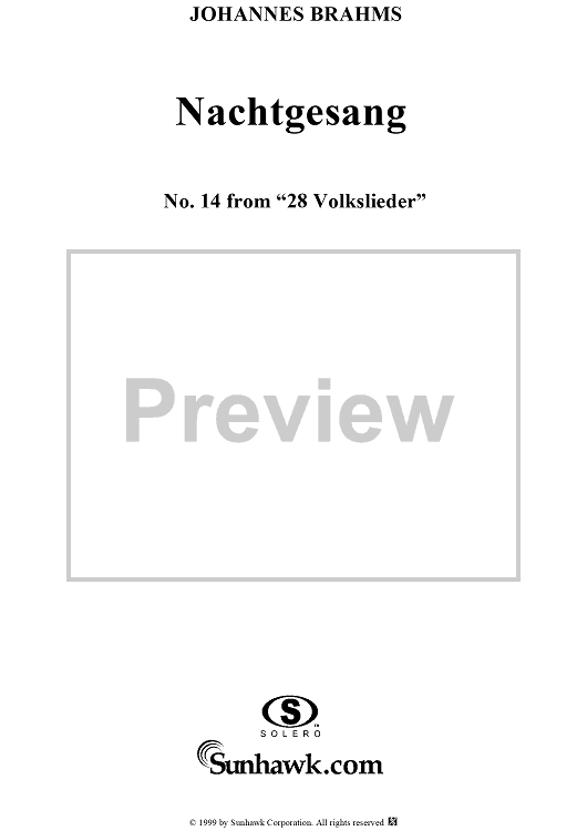 Digital Sheet Music for Nachtgesang - No. 14 from "28 Volkslieder" WoO 32 by Johannes Brahms scored for Voice/Piano; id:274158