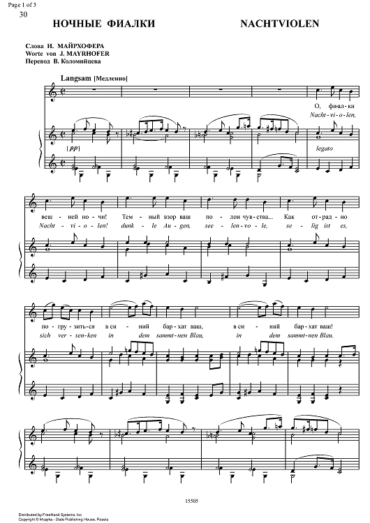 Digital Sheet Music for Nachtviolen D752 by , Franz Schubert scored for Soprano/Piano; id:337200