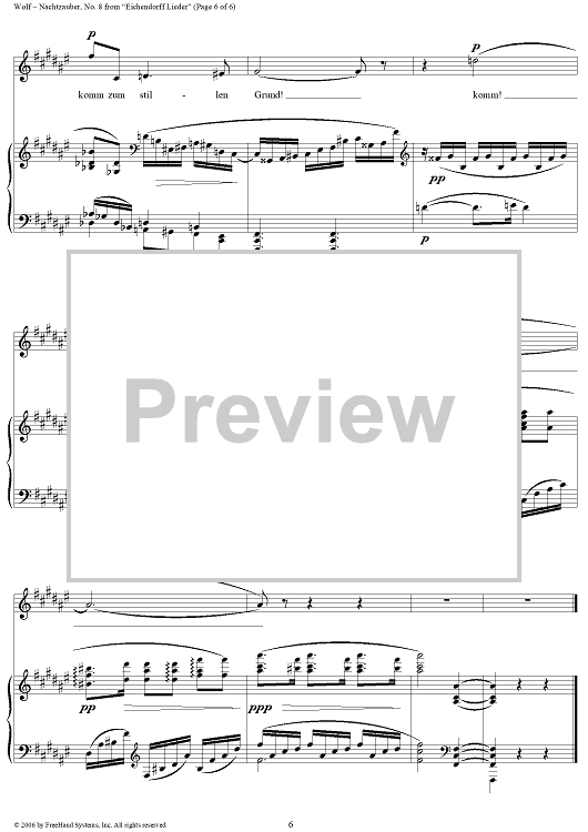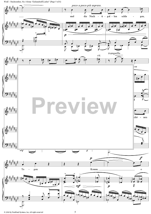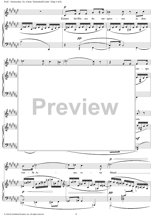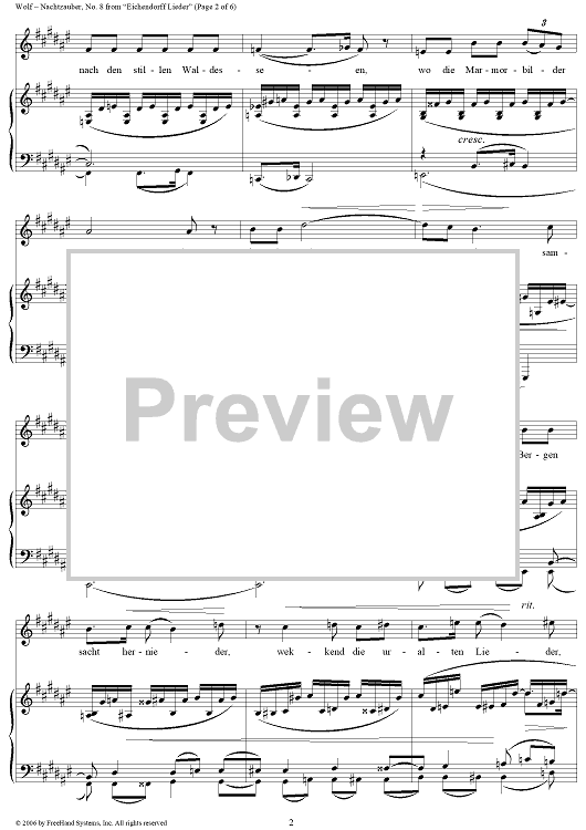 Digital Sheet Music for Nachtzauber, No. 8 from "Eichendorff Lieder" by Joseph von Eichendorff, Hugo Wolf scored for Voice/Piano; id:318971