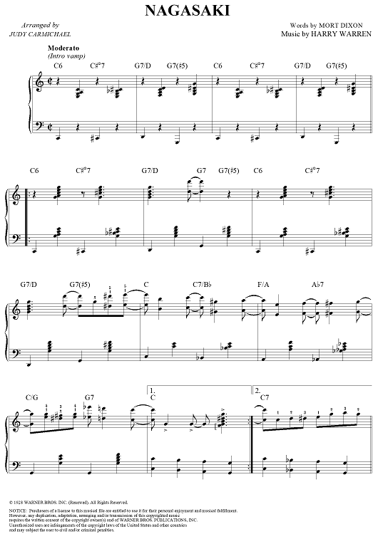 Digital Sheet Music for Nagasaki by Harry Warren, Mort Dixon, Judy Carmichael scored for Piano Solo; id:284895