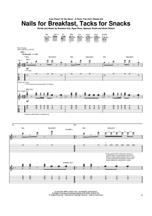 Digital Sheet Music for Nails For Breakfast, Tacks For Snacks by Panic! at the Disco, Ryan Ross, Spencer Smith, Brendon Urie, Brent Wilson scored for Guitar Tab; id:393850