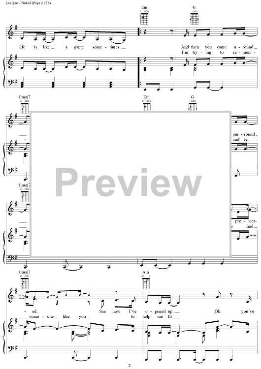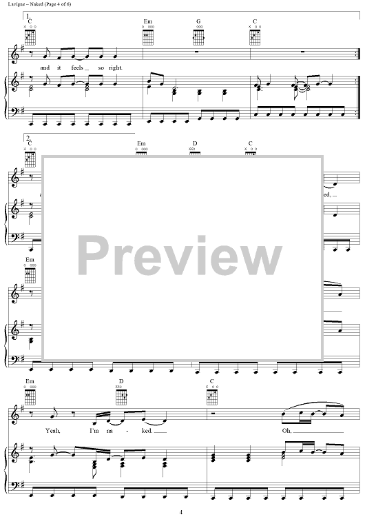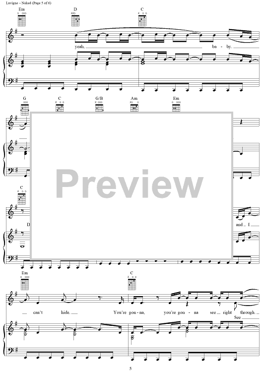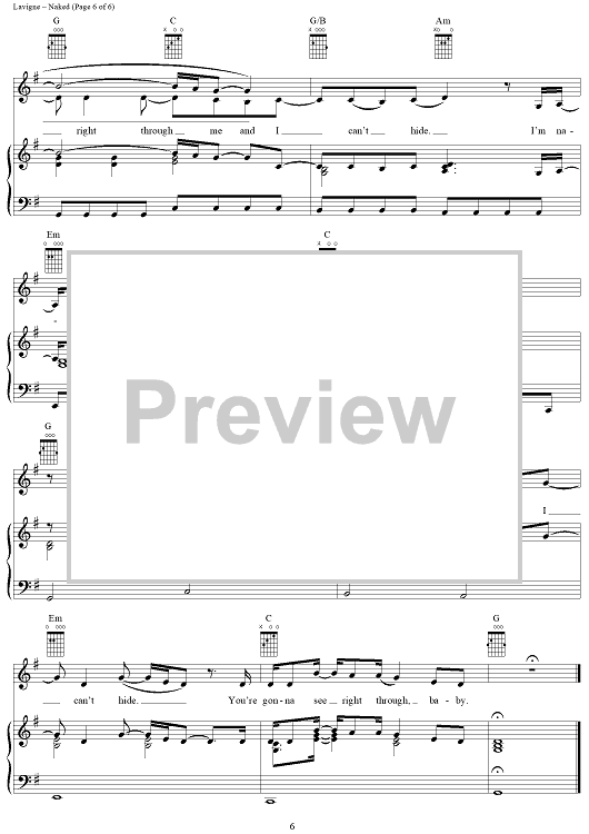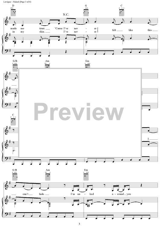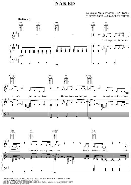 Digital Sheet Music for Naked by Curt Frasca, Avril Lavigne, Sabelle Breer scored for Piano/Vocal/Chords; id:367136