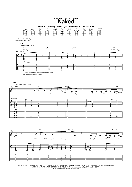 Digital Sheet Music for Naked by Curt Frasca, Avril Lavigne, Sabelle Breer scored for Guitar Tab; id:371530