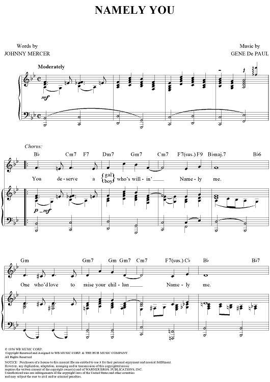 Digital Sheet Music for Namely You by Johnny Mercer, Gene De Paul scored for Piano/Vocal/Chords; id:112040