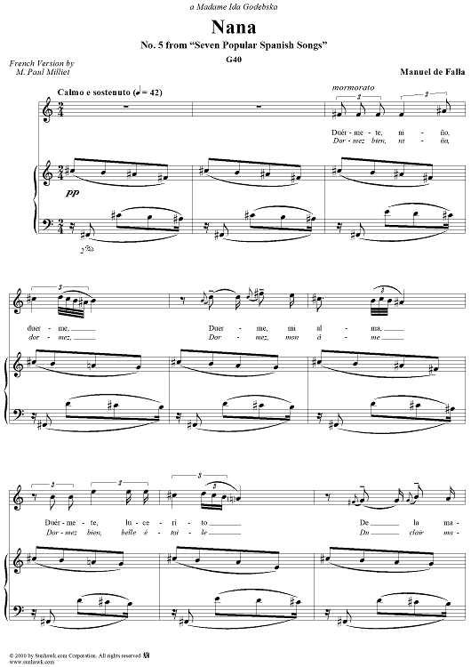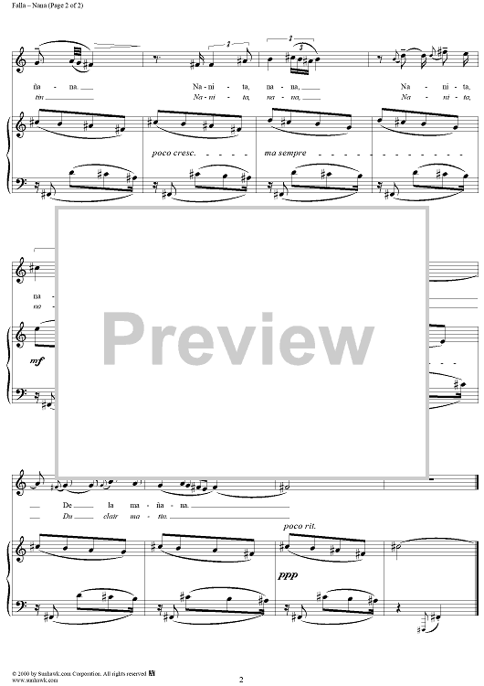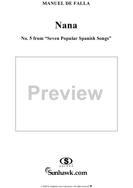 Digital Sheet Music for Nana by Manuel De Falla scored for Soprano/Piano; id:200112