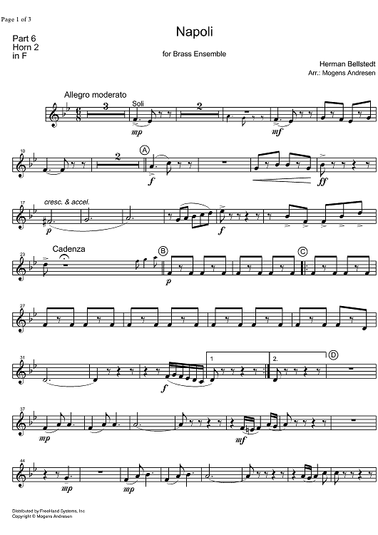 Digital Sheet Music for Napoli - Horn by Mogens Andresen, Herman Bellstedt scored for Brass Ensemble; id:327785