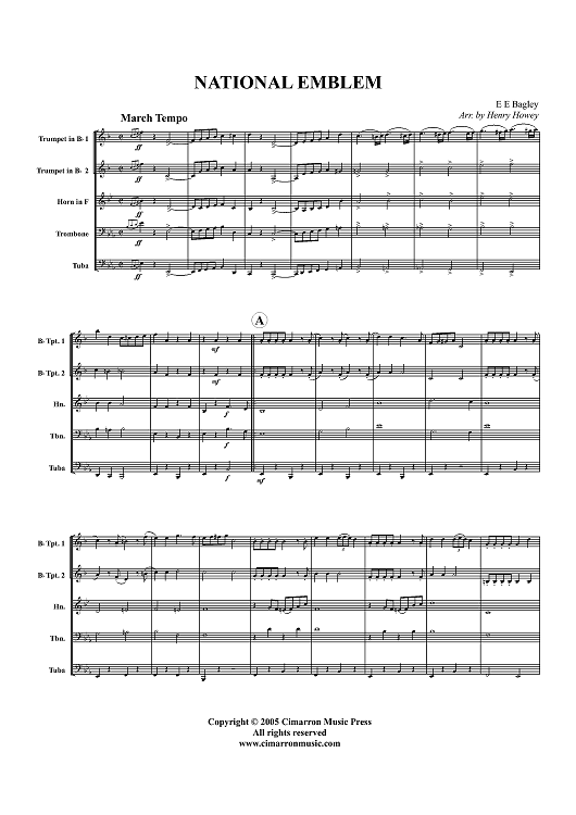 Digital Sheet Music for National Emblem - Score by E. E. Bagley, Donald Patterson scored for Brass Quintet; id:318156