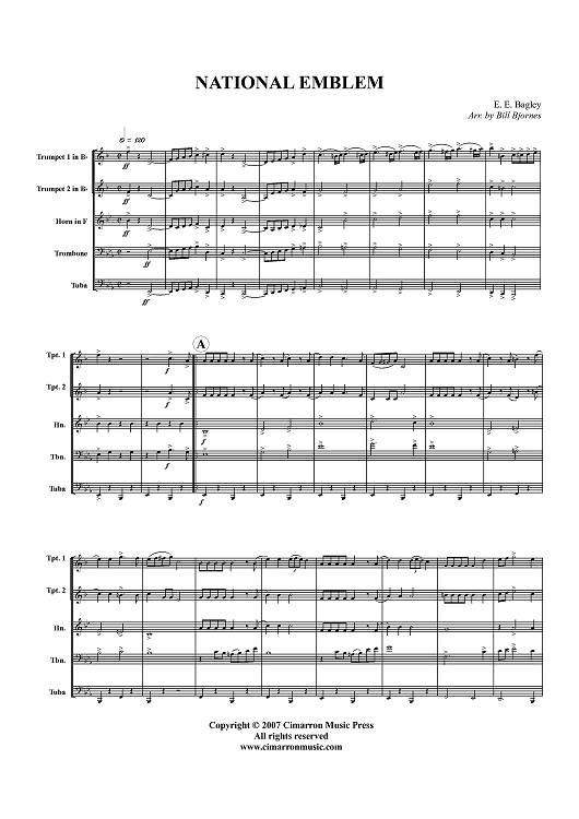 Digital Sheet Music for National Emblem - Score by E. E. Bagley, Bill Bjornes scored for Brass Quintet; id:362209
