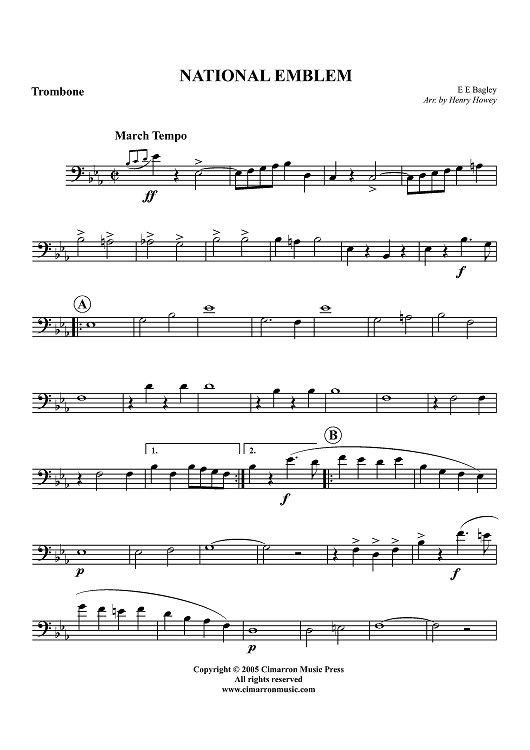 "National Emblem - Trombone" Sheet Music by E. E. Bagley