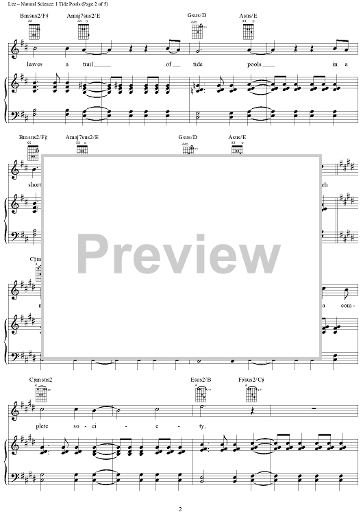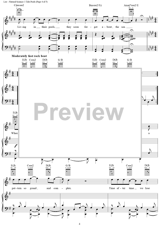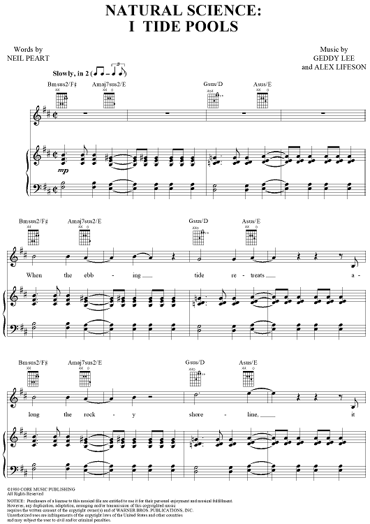 Digital Sheet Music for Natural Science, Part 1: Tide Pools by Rush, Geddy Lee, Alex Lifeson, Neil Peart scored for Piano/Vocal/Chords; id:240719