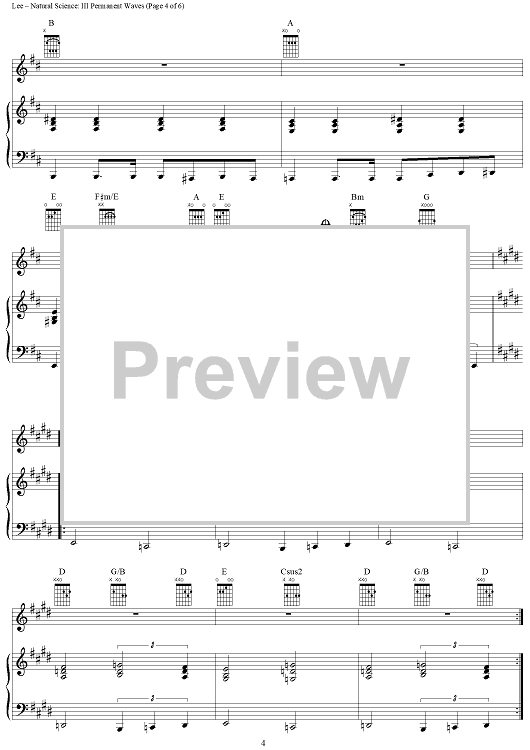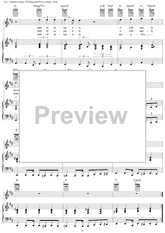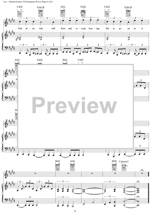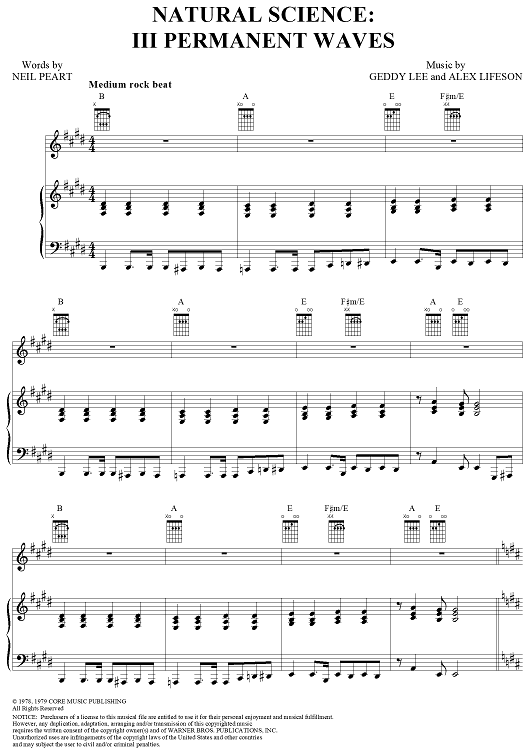 Digital Sheet Music for Natural Science, Part 3: Permanent Waves by Rush, Geddy Lee, Alex Lifeson, Neil Peart scored for Piano/Vocal/Chords; id:240718