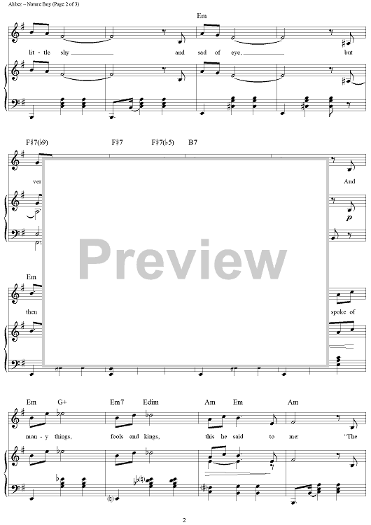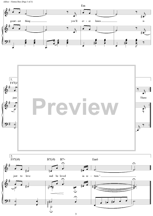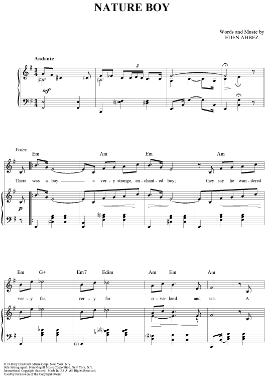 Digital Sheet Music for Nature Boy by Nat King Cole, Eden Ahbez scored for Piano/Vocal/Chords; id:365283
