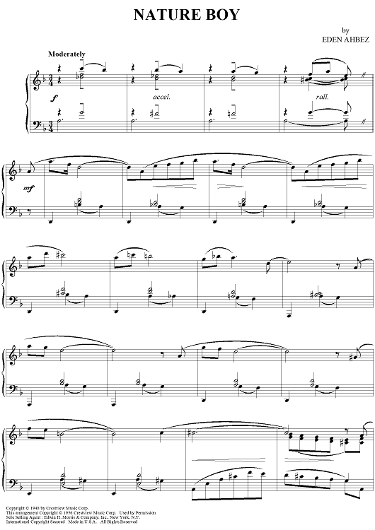 Digital Sheet Music for Nature Boy by Nat King Cole, Eden Ahbez scored for Piano Solo; id:366116