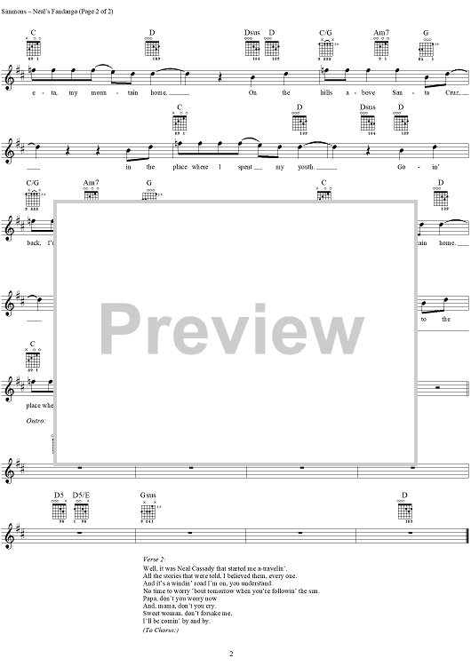Digital Sheet Music for Neal's Fandango by Patrick Simmons, The Doobie Brothers scored for Easy Guitar/Vocal; id:284965