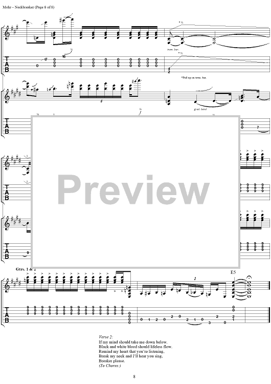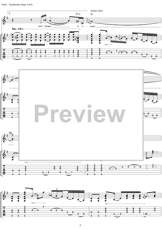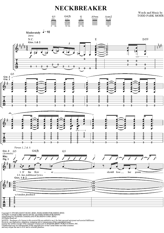 Digital Sheet Music for Neckbreaker by Todd Park Mohr, Big Head Todd and the Monsters scored for Guitar Tab/Vocal; id:252712