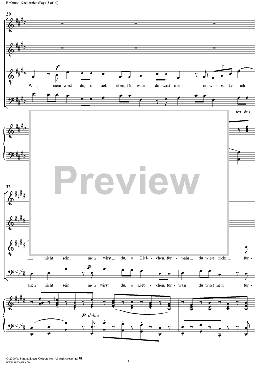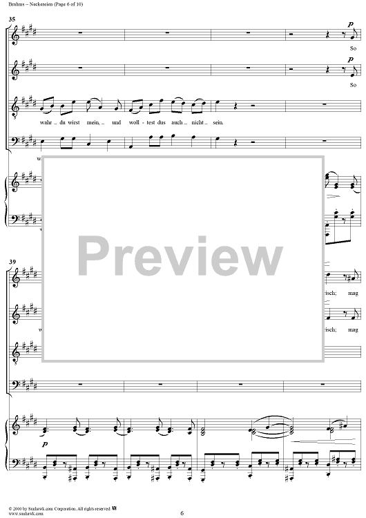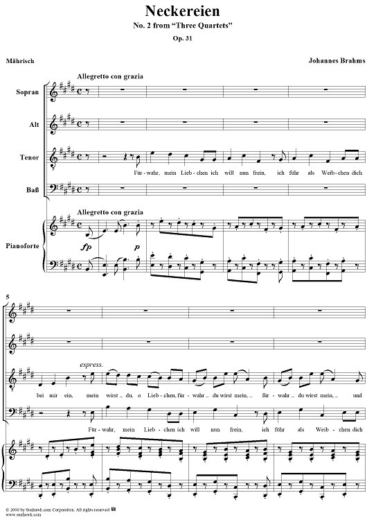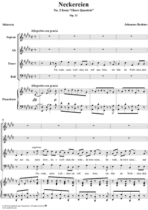 Digital Sheet Music for Neckereien, Op. 31, No 2 by , Johannes Brahms scored for Four-part Mixed Chorus/Piano; id:274565