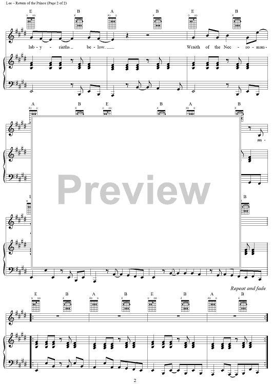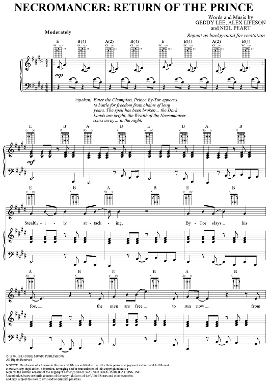 Digital Sheet Music for Necromancer, Part 3: Return of the Prince by Rush, Geddy Lee, Alex Lifeson, Neil Peart scored for Piano/Vocal/Chords; id:240716