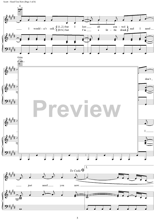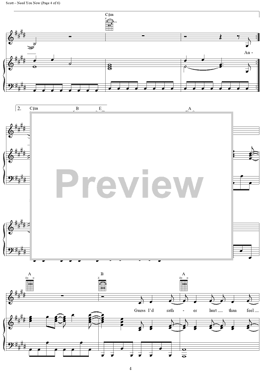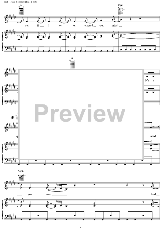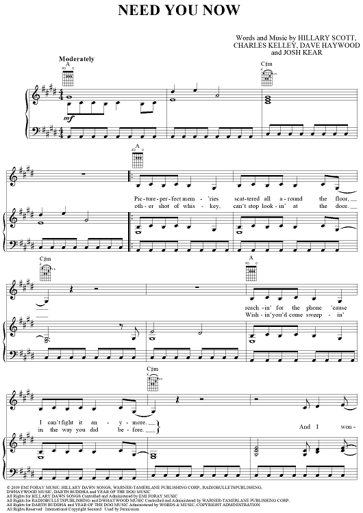 Digital Sheet Music for Need You Now by Hillary Scott, Lady Antebellum scored for Piano/Vocal/Chords; id:406692