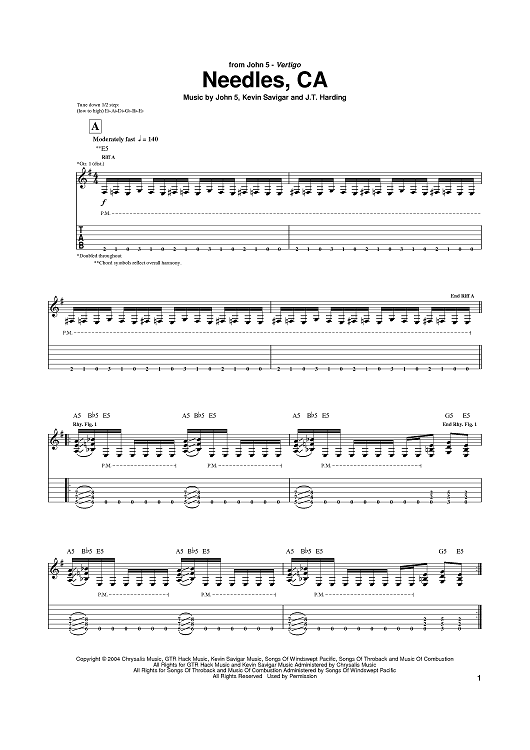 Digital Sheet Music for Needles, CA by Kevin Savigar, J.T. Harding, John 5 scored for Guitar Tab; id:381036