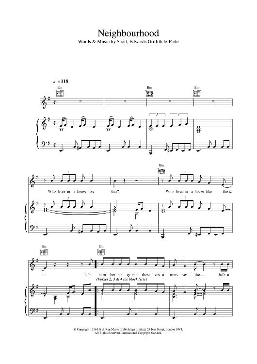 Digital Sheet Music for Neighbourhood by Space scored for Piano/Vocal/Chords; id:376291