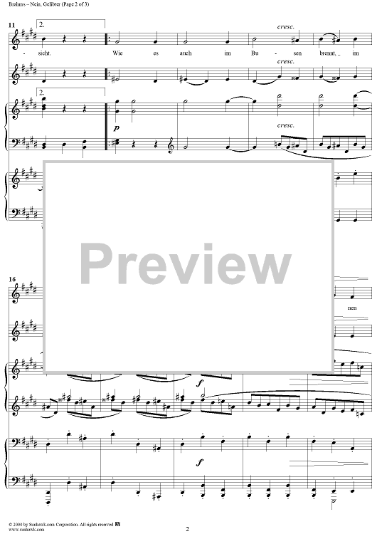 "Nein, Gelibter - No. 13 from "Neue Liebeslieder Waltzes" Op. 65" Sheet Music by Johannes Brahms