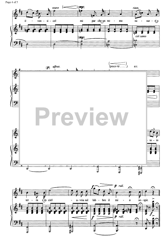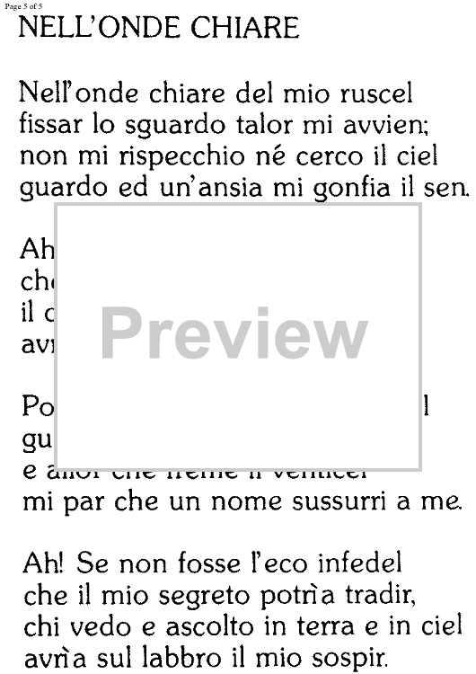 Digital Sheet Music for Nell'onde chiare by , Antonio Smareglia scored for Soprano/Piano; id:334563