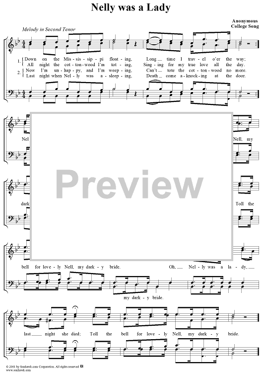 Digital Sheet Music for Nelly Was a Lady by Unknown Writer scored for Four-part Mixed Chorus; id:262896