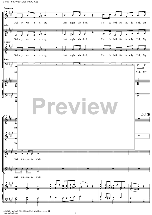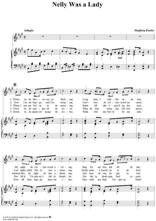 Digital Sheet Music for Nelly Was a Lady by Stephen Foster scored for Piano/Vocal; id:269675